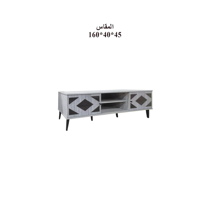 طاولة تلفزيون رمادية فاخرة بتصميم هندسي عصري 160سم