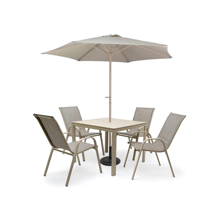 طقم طاولة طعام حديقة 5 قطع مع مظلة بيج